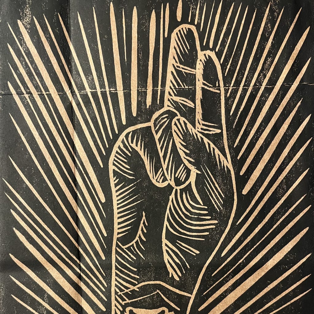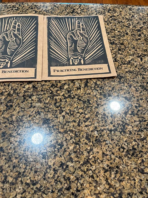 This practicing benediction site will be free, as benedictions should be. But, if you would like to support this site and become a paid subscriber, I will be glad to send you a copy of Practicing Benediction, with the same print on the cover. I can’t promise that it will be on a recycled brown-paper bag.